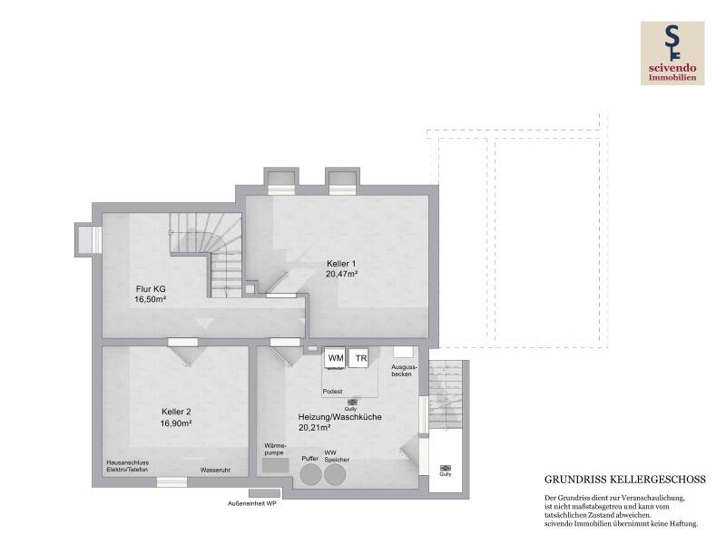 • Keller: 3 Räume, davon 1 Raum als Waschküche und für Heizungstechnik